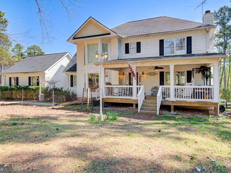 Traditional farmhouse located in Braselton west, on the border of Flowery Branch, Buford, and only 4 miles to I-985. This house is nestled in cul de sac, a quiet neighborhood, with no HOAs or Covenants. Bring your horses or chickens and plans for a large garden and mini farm. This property is zoned agricultural and on over four acres! There is an inground pool with a brand-new liner just waiting to be installed for you. The home features a half basketball court, four-bay lower garage and a two-car garage attached. Bring your multiple vehicles and large family in this 3 story, 5 bed, 3 1/2 bath. Enter into a large living room, kitchen with a maple live edge bar and breakfast nook, laundry room flanks kitchen with garage access on the main floor. The large dining room with a bay window is great for entertainment. Upstairs leads to three large bedrooms. The primary room boasts a walk-in closet, shoe closet nook and separate storage closet that could easily be transformed into another walk-in closet. The primary bath features ocean bowl sinks and a large modern jacuzzi with two shower heads. The basement level has two bedrooms and one bath, great for guests seeking their own private space, or the in-laws when they come to visit. The primary downstairs has French doors leading out to the pool, a large walk-in shower, a living room, and a kitchenette. This charming home offers a fantastic opportunity for personalization, potential for updates and landscaping enhancements to truly make it your own.