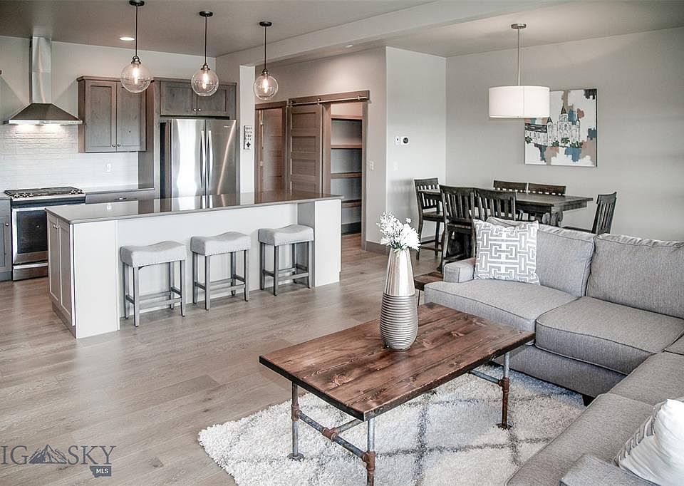 Like new townhome in a great location close to MSU, schools, parks and trails! High quality details include wood floors, gas fireplace and solid surface counter tops, all done in today's mountain modern tones. Open floor plan with a large kitchen island, attractive dining space and porch access that woks well for entertaining or just enjoying the amazing sunsets. Enjoy the large pantry with barn-style sliding door, a well placed half bath and a spacious mudroom complete with built-in "lockers". The master bedroom features expansive views looking to the west. You will appreciate the large walk-in closet and stylish master bath. The second floor is complete with two additional bedrooms and a laundry room. The well designed bathroom includes two sinks and a separate tub/shower and toilet area. Also, the added convenience of an attached 2-car garage with storage.
