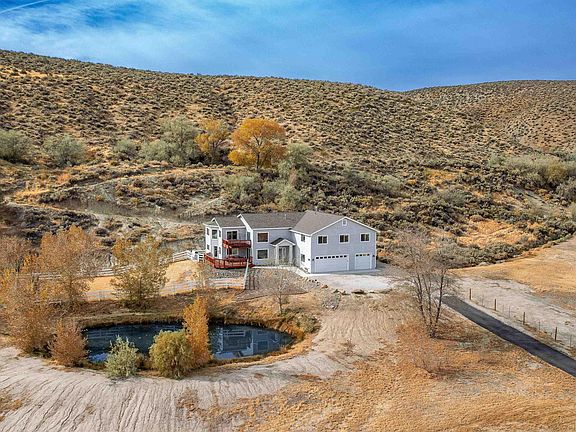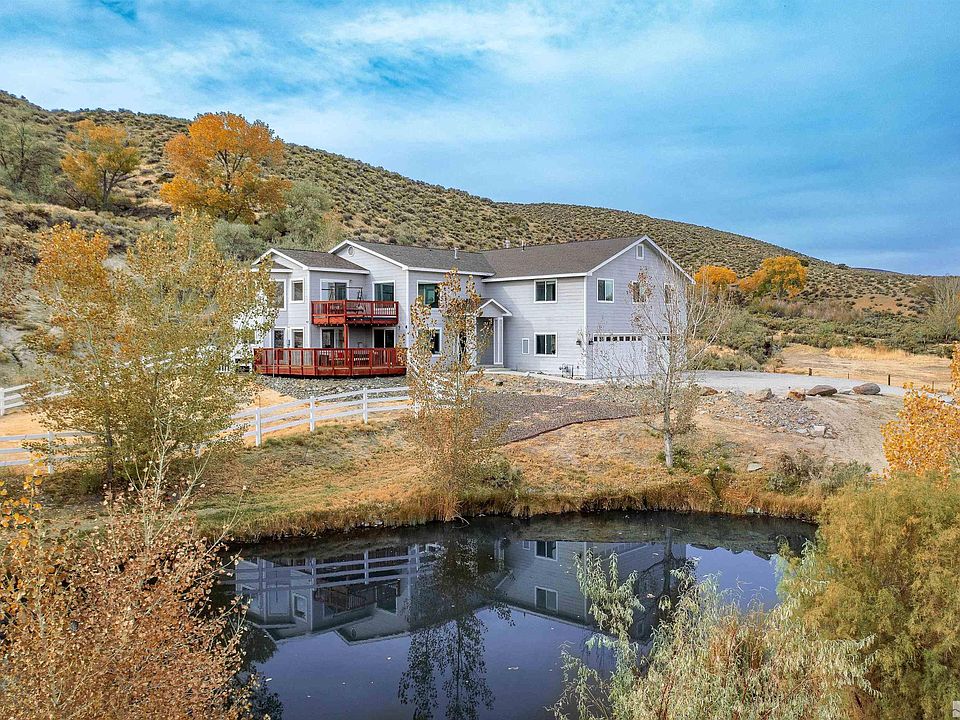 Everything and more that you could want in a Nevada property! With huge valley and mountain views, set on 5.5 acres with water rights and natural springs, a pond and a beautiful, updated custom home all set in a neighborhood off the beaten track. Backing to BLM with 6 bedrooms, 3 ½ bathrooms and 4,056 square feet, being sold turnkey. Just 30 minutes to Lake Tahoe and Reno, the possibilities with this amazing acreage are endless!, The downstairs living area has grand ceilings with huge picture windows to take in the vistas and is centered by the gas fireplace. The updated kitchen has stainless appliances, a gas range, farm sink, an island and breakfast nook with more built-in cabinets. Off of the living room is an additional game/bonus room with a bar and access out to the acres of property including the meandering trail up to the natural springs. Outside, the deck is the perfect place to entertain while the hot tub is the ideal spot to sit and relax and watch the stars. A fenced side yard and the pond give a delightful ambiance to the outdoor space. The half-bath, laundry room and an extra-large four-car-garage round off the bottom floor. Upstairs, down the open corridor, is the master bedroom with more huge valley views, a gas fireplace and a spacious master bath and walk-in closet looking over the back of the property offering extra privacy. Perfectly separated from the master, yet just down the hall, are five additional bedrooms, two full bathrooms and another bonus room that could be used as a media room/storage area or anything else to fit your imagination. With so much to offer and so many ways to make this property your own-it’s a must see!