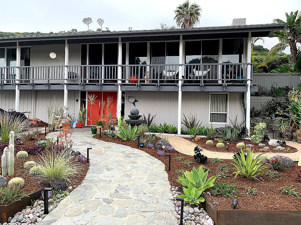 Two-story Midcentury Modern at the end of a cul-de-sac and top of a hill. Quiet and peaceful. House and yard are large. We respect the MCM style and have updated with appropriate materials. Nice landscaping featured on several websites.