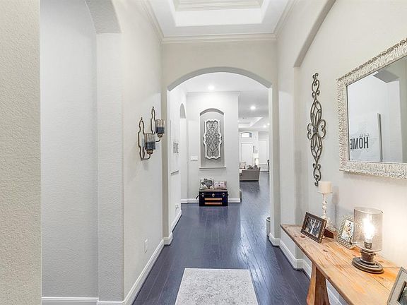 No stone left unturned in this gorgeous Village Builders custom home located in the beautiful community of Falls at Imperial Oaks! Beautiful design elements include clean lines, wood flooring, tray ceilings, crown molding, art niche's, 6" baseboards & accent walls. The kitchen includes large center island w/breakfast bar, white custom cabinetry, SS appliances, gas cooktop, built-in gas oven & microwave. The beautiful formal dining room includes tray ceilings, chair rail, wood flooring & chandelier, perfect for dinners w/the family. Large master bedroom w/ sitting area, crown molding & vaulted ceilings. The master bath retreat includes a jacuzzi tub for relaxing, his/her sinks, linen closet, separate shower & white cabinetry. Large family room w/ tray ceilings, wood flooring & cozy fireplace, open to the kitchen. Spacious guest bedrooms! Big study/office. Imagine BBQ's w/ the family on the weekends out on the back cover patio with extended stamped concrete! This house is a must see!