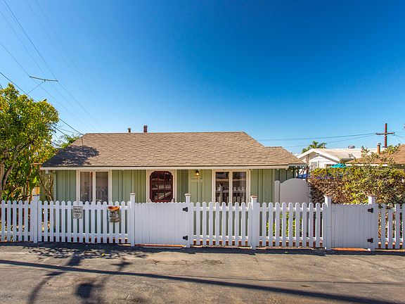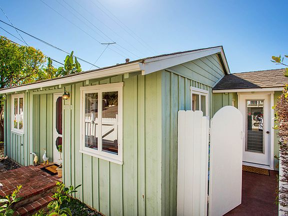 Charming beach cottage located just blocks from the beach! Single-family home on a double lot, 2 Bdrms + 2 Baths set up with the main residence having one bedroom, and one remodeled bathroom and the detached studio space with a perfect second space (perfect for Home Office and 2nd bedroom under separate roof) and updated bathroom with stall shower with pebble floor and bench. The main house living room has vaulted pine ceilings and loads of sunlight. Bright, well equipped kitchen with vintage tile, picture window with Westerly Peek-A-Boo Views of ocean and sunsets. Breakfast area opens to private patio (which was just expanded with Trex Deck, green space with exterior decorative fireplace, which leads directly to studio space and one car attached garage (or home gym) with laundry hookups. Lush landscaping with fruit trees and picket fence! True Beach Living at its best! Looking for a One Year plus lease.