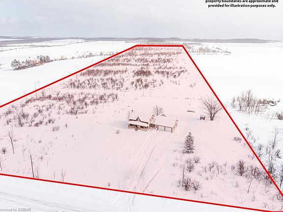 25 acre Thornbury Family Home - 3 bedrooms, 2.5 bathrooms situated on 25 acres just 7km west of Thornbury and 8km south of Meaford on 3rd Line. Property perimeter is fully fenced and is suitable for equestrian or other hobby farm uses. Or just enjoy the wide open spaces, privacy and open view of the sunsets. Relaxed country floor plan with eat-in kitchen on east side of house (Floor Plans in Docs). Large living room with wood burning stove that will heat the entire main floor. Office, den or tv room compliments main level living. Upstairs large master bedroom with en-suite bath and large closets. Two additional family bedrooms with closets and shared main bathroom. Main floor laundry room adjacent to extra large breezeway / mudroom entering home from garage, perfect for boots, ski jackets, dogs and storage. Double overhead door garage but room for 3 cars and plenty of equipment, bikes, etc. Lower level is finished and provides ample space currently used for stationery bike, work-out area, tv / games room and storage. The acreage is former pastureland. It's high and dry and could be cut with bush-hog and turned into pasture, cultivated into gardens or many other uses. No other opportunities currently to purchase 25 acres so close to Thornbury and all area activities. On the bus route to new "mega school" opening in Meaford in the fall of 2021.