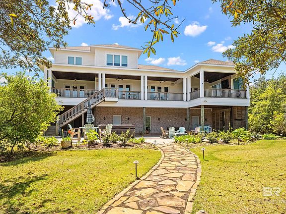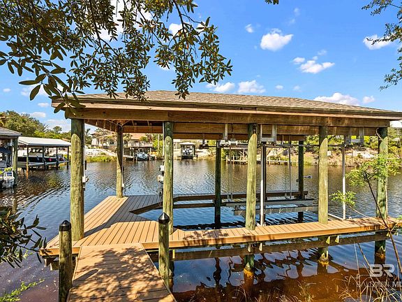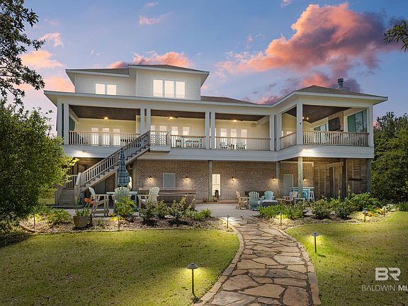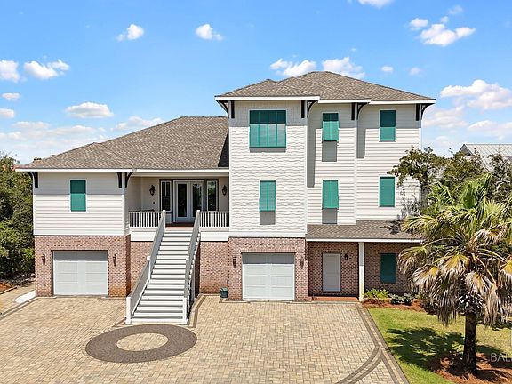 Ono Island’s Crown Jewel, perched on one of Ono Island’s highest points, this southern charmer boasts all-things nautical. Stunning canal frontage, easy, quick open-big water access, sunset views + regular sights of pelicans! This residence has an elevator, a new boat dock and boat lift. Outdoor includes a gas log fireplace, indoor/outdoor sound system, outdoor grill, tile back patio, shuttered enclosure, backlit walkway + Trex on front steps. Master Chef’s Kitchen includes mixer lift, leathered granite, large island w/ various custom storage, dimmer lights, oversized glass globe pendants, awning cooktop, steamer & convection oven, induction oven (like gas), water faucet over stove, soft close cabinets, wine cooler, microwave in pantry, extra spice & utensil pullouts. Master BR has back door exit, scenery & water views, shiplap ceilings, walk-in closets, private master bath. Master Bath has free-standing tub, beveled glass walk-in shower, gorgeous glistening quartzite. The Living Room is breezy, open, vaulted ceilings crafted of pecky cypress + double door entries back deck. Main level Office has private balcony entry. Downstairs garage w epoxy flooring has ½ bath & welcoming room + shiplap walls. Pine paneling finishes garage w beadboard ceilings. 2 two back exits to patio. Storm & Beach Shutters. Hose pipes connected in front for water feature + plant watering. Separate private downstairs entry. Fine finishes: 4” crown, quartzite/granite, wide plank hardwood, floor outlets LR, extra thick baseboards. Also: water filtration + well sprinkler system. Backyard Stonybrook Courtyard, architectural pavers, outdoor firepit, built in gas grill + fireplace fueled by propane. Large capacity hot tub remains. Outdoor TV above stays. NEW AC Unit. Geothermal AC. New Hot H2O Heater. Washer & Dryer convey. Buyer to verify all information during due diligence.