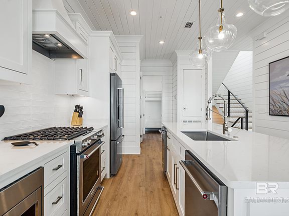Fully furnished LUXURY home in a NEW waterfront community on Cotton Bayou with water views! Home conveys with a deeded COVERED BOAT SLIP! This development features a large zero entry pool with sun shelfs, brick paved streets, and a marina! This home is certified Fortified Gold and features quartz countertops, custom tiled showers with glass shower doors, upgraded stainless appliances, gas range, on demand water heater, under-cabinet ice maker, wood ceilings and shiplap walls in the main living area, beautiful coastal finishes, and a private Elevator. Back porch views of both the Gulf and Cotton Bayou. Excellent rental potential! Prime location in the heart of Orange Beach. The Osprey is across the street from the beach and a quick boat ride to Perdido Pass, world-class fishing, and many of Orange Beach's popular waterfront restaurants including Zeke's, Tacky Jack's, Cobalt, and Flora Bama Yacht Club. Make your appointment to see this one today! Buyer to verify all information during due diligence.