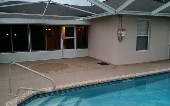 Lovely Pool Home. This home has formal living room, family room and dining area. Kitchen has a breakfast bar with refrigerator, stove, microwave and dishwasher. Inside laundry closet with w/d hook-ups. Tile wood laminate flooring. Screened-in lanai with doggy door. Completely private fenced-in yard. Screened In-ground pool with maintenance included. Pet ok.