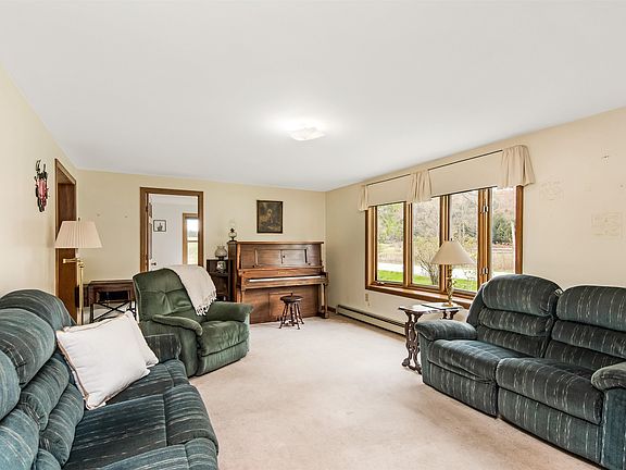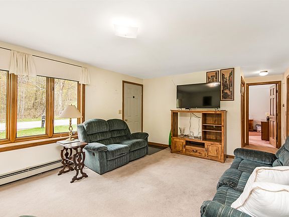 Ideally situated between Richmond, Hinesburg, and Williston, this ranch is the perfect slate for you to make your desired upgrades and updates! Potential abounds in this single level home, which features three generously sized bedrooms. The primary bedroom is expansive enough to fit a king-sized bed along with other furniture comfortably, and the private full bath features a jetted tub and large shower stall. The primary also has a large walk-in closet with shelving and hanging racks. On the other side of the house, two additional bedrooms have spacious closets and lots of natural light. These bedrooms share a full bathroom in the hall, which also has a washer & dryer tucked away in the closet. At the front of the house is a large living room with an enormous pop-out window overlooking the pond across the road. Continuing past the living space, you'll find a spacious eat-in kitchen/dining area with a slider door to the deck. From there, head outside to the back yard or down the hallway to the attached 2-car garage. An unfinished basement offers opportunity for storage or potentially more finished space. On just under 2 acres, 3173 Hinesburg Road offers must-have features inside and a great plot of land to enjoy outside. Move right in and start enjoying this one level home that's only seen one owner in 30 years!