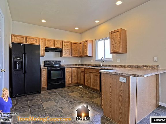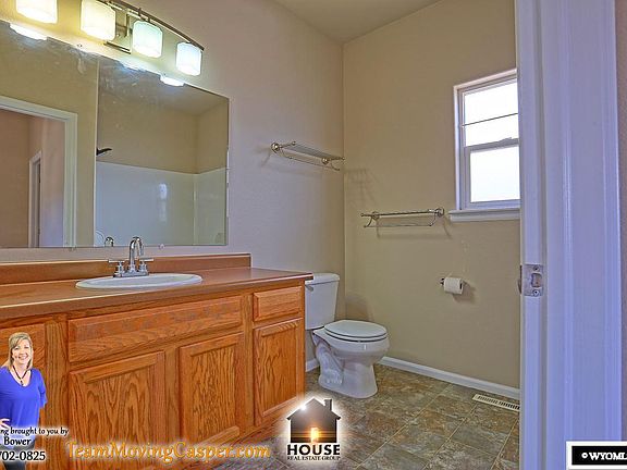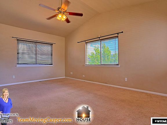 Nice 3 bedroom, 2 bath, 2 car garage home on a corner lot! Large family room, eat in kitchen with tile flooring and huge pantry area. Main floor bathroom/laundry room. Upper level has large Master suite with walk-in closet plus 2 more bedrooms and another bath. Vinyl fencing, central air, and neutral decor throughout! Call Kreeta Bower for more information. 307-702-0825.