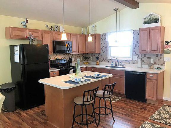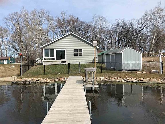 Lakefront and new! No work to do here........Tastefully decorated inside, this 1 story 3 BR 2 bath home was built new in 2013 and boasts 50ft of main lake frontage (lot size 50x156), attached 2 car garage, lakeside covered/enclosed sunny porch, fenced yard, nice pier w/fish cleaning station....and more! Low maintenance and energy efficient, total electric (avg. $125), easy to clean wood laminate flooring throughout, vaulted great room, beautiful kitchen w/maple cabinetry, soft close drawers, solid surface Corian countertops, oversized SS sink, custom tiled backsplash, island, pantry and all appliances included. Culligan reverse osmosis water filtration system and water softener. Storage shed, covered front entry porch and concrete driveway make this home move in ready. Come and enjoy the lake NOW! Price Reduced!