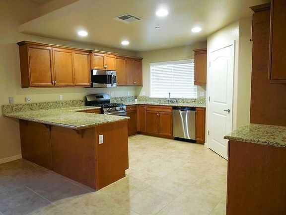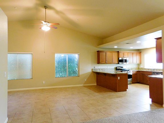 This spacious 4 bedroom homes is in a cul-de-sac in Clovis. The home features tile floors in the entryway, in the dining area, kitchen and down the hallway. The kitchen has granite countertops, with a gas stove, built in microwave, dishwasher and large pantry. In the kitchen there is a space that could be used as a coffee station or a versatile beverage or snack area. Open floor concept to the living room and dining area. Ceiling fans throughout, all of the bedrooms have laminate floors. In the master bedroom there is a walk in closet plus another one in the bathroom. The master bathroom has a dual vanity, standing shower and tub, with grab bars. There is a shower & tub combo in the guest bathroom with a dual sink vanity and a linen closet. All of the other bedrooms have large closets. Laundry room inside the home with appliances (As Is). There is a covered patio with a small backyard and a storage unit. The 2 car garage has some shelving. The home is 2000sqft. Rental Ins. Required.