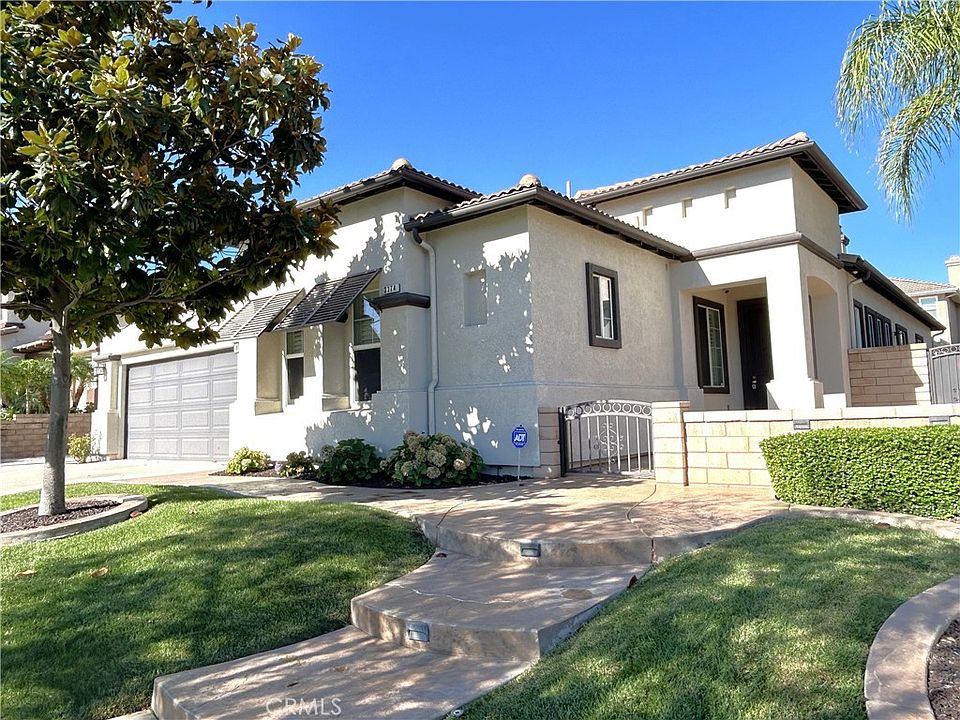 Absolutely stunning single-story home for rent in Corona, featuring 3 bedrooms, 3 bathrooms, and 2,359 sq. ft. of living space with central air and heat. This immaculate property offers beautifully manicured landscaping, a gated front porch, wood floors, custom window shutters, abundant kitchen cabinet space with a pantry, a tiled fireplace with built-in entertainment cabinets, recessed lighting, fresh interior paint, and ceiling fans in every bedroom. The home is hardwired with ethernet and coaxial cable and boasts an expansive master suite with a walk-in closet enhanced by a custom cherry wood organizer and a luxurious bathroom with a marble tile shower floor. Additional highlights include a three-car tandem garage with overhead storage and a showroom-style floor finish, while the backyard is perfect for entertaining with a wraparound cement patio and a covered dining area. Ideally located off Lincoln Avenue and Foothill Parkway in the heart of Corona, this home blends comfort, convenience, and elegance.