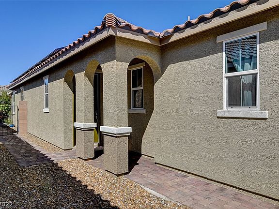 **40K reduced. Highly upgraded single story home situated in a highly desirable master plan community, Inspirada! SOLAR POWER SYSTEM OWNED (3800W, Meyer Burger), installed in August 2022. Extra-length kitchen Island, Upgraded kitchen cabinets, Samsung 4 door Refrigerator, Samsung platinum HE washer & Dryer. This fabulous open floor plan features 3 bedrooms, 2.5 Bath, Smart pro waterproof wood like floors throughout, Orac Décor crown molding , powerline water purification system, R/O System, Tankless water heater, Security system with cameras compatible to smartphones. Epoxy flooring and Built-in storage in Car Garage. Covered patio with retractable shade on the side. Fully landscaped backyard with Synthetic turf & Pavers. Full length raised bed for gardening. 8 fruit trees, paved Trash can bay and pavements from front to backyard. All appliances, water softener, R/O system, 65" TV and drapes/curtains will stay. Total upgrades around 80K.