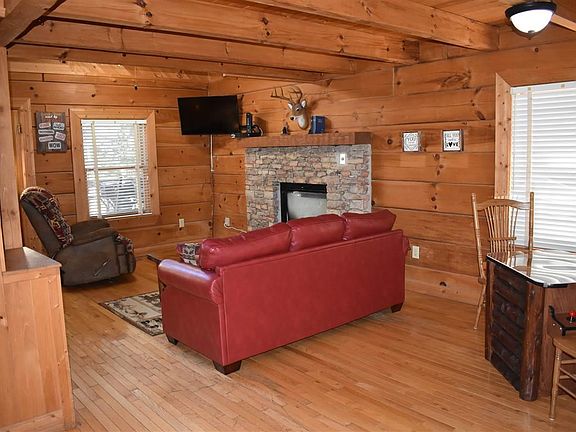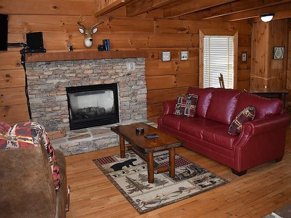 True log cabin in a great location . Featuring hardwood floor, gas log fireplace, new living room furniture and a nice porch with hot tub. Nestled in the woods for privacy but close to downtown Pigeon Forge. Already established and doing well on rental program.