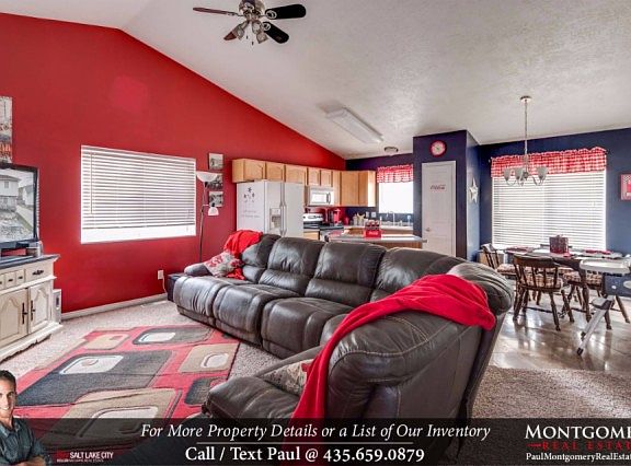 Located far enough away from the busy city to enjoy 4X4 recreational fun & hiking trails right out your back door, & still you're 5 mins drive into town for shopping & dining out!! Very friendly & comfortable neighborhood, playground is close. The home sits slightly higher than most the neighbors, backed with great mountain views! Inside you'll find a well painted open-floor concept that feels enormous with the towering vaulted ceilings! The master bedroom has a full bath, walk-in closet, & new carpet. Huge family room downstairs & one large unfinished mechanical room awaits your final touches (great storage or 4th bedroom). Lots of extra storage under the entry room.