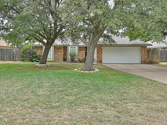 Move-in ready with thoughtful updates, this 3-bedroom, 2-bath home in Heritage Parks is a true gem. A split floor plan and vaulted ceilings create an open, functional layout, while a cozy wood-burning fireplace adds warmth to the spacious living room. The kitchen features granite countertops, a center island, and plenty of space for meal prep or entertaining. The primary suite offers a modern en-suite bath with a stylish soaking tub-shower combo, dual walk-in closets, and updated tile work. Fresh paint and new carpet make this home feel new. Step outside to enjoy the mature shade trees, covered back porch, and dog run—perfect for pets or a garden. In addition to a small storage building, the property includes a larger electric-equipped metal workshop, offering endless possibilities for hobbies, storage, projects, or a home business. Conveniently located near ACU, HSU, Hendrick Medical Center, shopping, and dining, this property combines comfort, function, and location in one complete, affordable package.