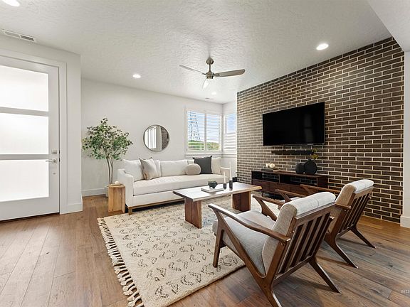 Incredible lock and leave property with beautiful unobstructed views of the Boise Foothills in Harris Ranch. Prime location- situated near the Boise River, Greenbelt, world class hiking/biking trails and Bown Crossing. Coveted corner unit is highlighted by sprawling hardwood floors, brick accent walls, floor-to-ceiling cabinets and extensive detail throughout. 3 spacious bedrooms plus main level office. This flexible, open floor plan has a gourmet kitchen that features an expansive island, quartz countertops, bar area, custom alder cabinetry, sleek backsplash, stainless appliances and walk-in pantry. Spacious owner's suite includes dual vanity, tile floors, tile shower and walk-in closet. Excellent indoor/outdoor entertaining- fully fenced private patio. Active lifestyle- walk/bike to the community pools! Minutes to the Boise River, restaurants, shopping, Barber Park, Warm Springs Golf Course and downtown. Fully finished garage with epoxy floors & 11x11 shop space.