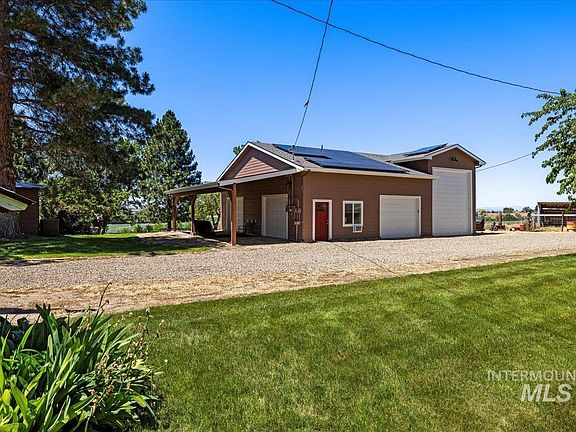 Gorgeous 4 bed, 3 bath home with den/formal dining room. Bonus! A full 1 bed 1 bath, full kitchen walkout basement apartment which can be used as an Air B&B or multi-generational living! The entire home is newly remodeled and updated inside! New flooring throughout upstairs, full kitchen remodel including opening structural wall into living room for more openness, new appliances (upstairs & down), upstairs bathroom expansions, master bedroom walk-in closet. 2 fireplaces, new AC/heat unit. The deck with the pergola looks over the setting sun with a spectacular view of the fields, river & mountains. Fully paid for solar package. New 40x60 shop & RV garage includes 2 side by side insulated, air conditioned & heated workshops with roll-up doors onto a carport area for big projects, with a Jack and Jill ½ bath between them. Drive-through bay, RV bay, & attic storage space above shop side. 3.64 acres so bring your horses or livestock. 1 acre zones Ag. New automated ditch irrigation system. This is a must see!