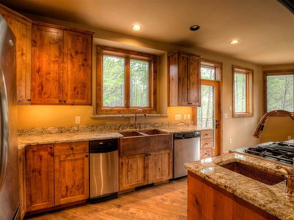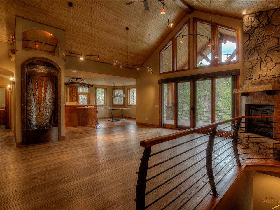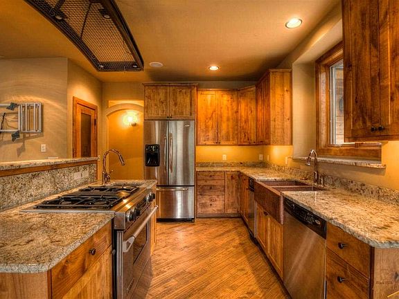 This custom home is perfectly positioned to take full advantage of one of the most beautiful and secluded lots in Canyon Springs Preserve. Featuring handscraped hardwood flooring, granite counter tops, copper sinks and breakfast bar and custom interior water fall. Main floor master bedroom with large his and hers walk-in closets, custom shower and bath. Main floor office with custom shower and large main floor laundry connecting main floor to the attached garage. View jagged limestone cliffs from the kitchen, dining, living room, covered patio or the magnificent covered deck. The lower level features a one of a kind custom bar area with wine cellar, theatre room, recently finished excerise room and 2 large bedrooms each with full baths!