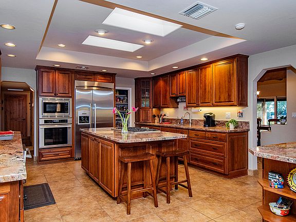 * Charming 4 bdrm (plus HUGE office/studio!) in a very special, small gated community in the Old Foothills off Camino Real. PRIME, perfect spot in the cul-de-sac! Gorgeous remodeled kitchen w/ alder cabinets, beautiful granite, ss appliances, gas island stove, huge walk-in pantry! This home has it all: charming wood beams, 3 gas fireplaces, warm ceramic tile, new neutral carpet, solid wood doors, remodeled master bathrm,, convenient wet bar, & fabulous outdoor covered patio spaces! INCREDIBLY PRIVATE 1.24 acre lot w/mountain, city & sunset views! Private yard w/ intimate paver courtyards, lovely pool/spa, & built-in BBQ area. North/south orientation. Wonderful split floor plan! Separate entrance to huge, private 510 sq ft office! In the heart of the Old Foothills, CONVENIENT TO EVERYTHING!