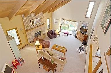 gorgeous two story contemporary with a country flare offering 3 bedroom and 3 baths.located in the convenient and sought after highlands 460 neighborhood.this wonderful home is ideal for a family entertaining and relaxing. spacious living spaces with massive vaulted ceilings and open floor plan. backyard presents a fully designed and landscaped setting with a large deck and a running flowing stream feature. an abundance of trees and foliage abound. updated kitchen features tile floors large island and separate sitting area.16 x 36 family room with wood beams and fireplace. new roof and paint thruout. view photos!