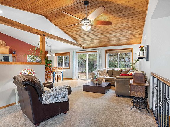 Gather Here is an Understatement! This Spacious home sits on a quiet cul de sac of well-maintained properties. It boasts large rooms full of light & is yet cozy. The full basement is the favorite place to gather with the fireplace & entertainment kitchen. The massive main kitchen has plenty of room for multiple chefs & the open concept makes it perfect for hosting. Quartz & Granite throughout. Original stone elements and vaulted wood ceilings kept the 70’s charm, but everything else has been updated. New energy efficient double hung windows in 2009. HVAC Replaced in 2013. Exterior Paint 2017. New Roof and Jotel Wood burning cast iron stove 2016. Cal Spa Hot Tub 2019. New Carpet in basement and interior paint 2025. The Private back yard with mature trees and perfect for an evening soak under the stars. The Solar electric bill is pretty awesome, Panels installed in 2019. The unique shed play port has plenty of storage, a place to play and a spot for your toys. No HOA, bring your campers.