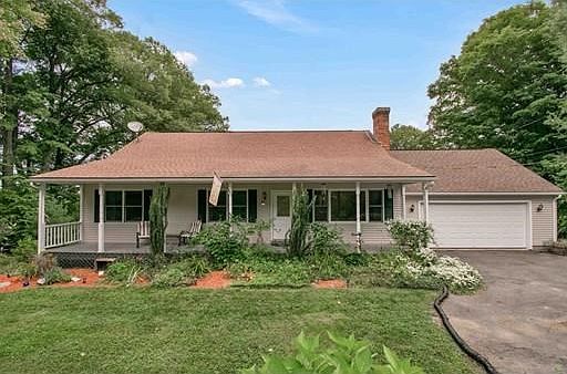 Seeking ONE FLOOR living? Seeking a PRIVATE Oasis w/ scenic VIEWS? Seeking a COZY home? THIS IS IT!!!!! Secluded on 1.04 acres this Unique Ranch built in 2002 has SO much to offer...Wide open floor plan awaits you as you enter this beauty, vaulted ceilings in this spacious living rm w/ brick hearth frplc, wood laminate flrs opening to kitchen w/ dining area & access to deck area dining w/ beautiful scenic views and sunrises overlooking a flat oversized yard. Master suite retreat offers dual closets, 3/4 bth and is spacious in size, two ample additional bdrms & full bth are located to the left wing. But WAIT! The lower lever has been partially finished with a cozy family rm highlighting a pellet stove & french doors to exercise rm & a walk out on top of it all. Seller states upgrades includes: Remodeled baths, lower level partially finished, interior garage & doors (2019). Don't forget about the farmers front porch where you can relax and listen to the babbling brook!! A MUST SEE!