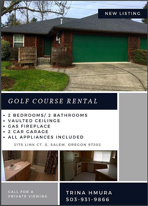 Beautiful 2 bed, 2 full bath, 2 car garage with sink and storage, gas heating, all appliances included, washer and dryer included. Close to Minto Brown Island park, the Courthouse Athletic Club, minutes from downtown. Walking distance to South Salem Golf Course! Tenant responsible for utilities.