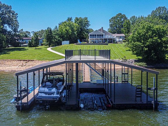 Prime Waterfront Living On Ky Lake! This Stunning & Spacious 5-bed, 4.5-bath Home Spans 6366 Sq Ft. Features Include: Oversized Owner's Suite And Bath, Bunk Room, 2nd Primary Bed And Bath, And The 5th Bdrm And Bath In The Lower Level. Enjoy An Expansive Great Room With Stone Fireplace That Is Open To Dining Room And Kitchen, Complemented By A Screened Porch And Sundeck On The Main Level, And A Covered Patio On The Basement Level. Additional Highlights Include An Inviting Inground Pool, Hot Tub, Expansive Windows Framing Stunning Lake Views, A Basement Game Room, Wet Bar With Icemaker, And A Wine Cellar. A Newer Dock Offers Two Boat Slips With Lifts And An Upper Suntan Deck, Completing This Exceptional Lakeside Retreat! Furniture Included!