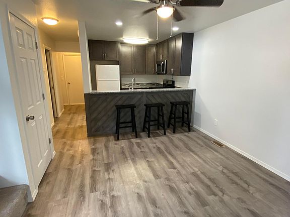 Two bedroom one and a half bath duplex in CDA. Home is newly updated with laminate wood flooring, paint, gas fireplace in the living room, breakfast bar, double car garage, storage shed out back, and is available for showing now.