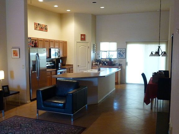 This modern and comfortable house is located in Barrio Centro, and was designed and built (in 2002) by Chris Kemmerly, award-winning builder of Miramonte Homes. A spacious 3-bedroom, 2-bathroom home with vaulted ceilings, recessed spotlights and clerestory windows. Kitchen is open with island bar, stainless steel appliances, ample cabinet space and pantry. Living room is extended (great) room with scored concrete floors, custom-designed by Rogo's. Master bedroom at rear of the house (split floor plan) with giant walk-in closet, double vanity, skylight, large shower area and private toilet. Small walled-in back yard with covered patio. Attached 2-car garage for storage and security. Extra amenities include: wrought iron security door, stained glass inlet window, cellular window shades, new front load washer and dryer, and newly repainted exterior and resealed roof. Private pool and spa are right across the street. Ideal north-central location with proximity to Rillito River Path, Brandi Fenton Park (and dog parks), JCC, Trader Joe's, shopping, dining and University of Arizona.