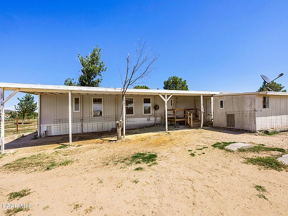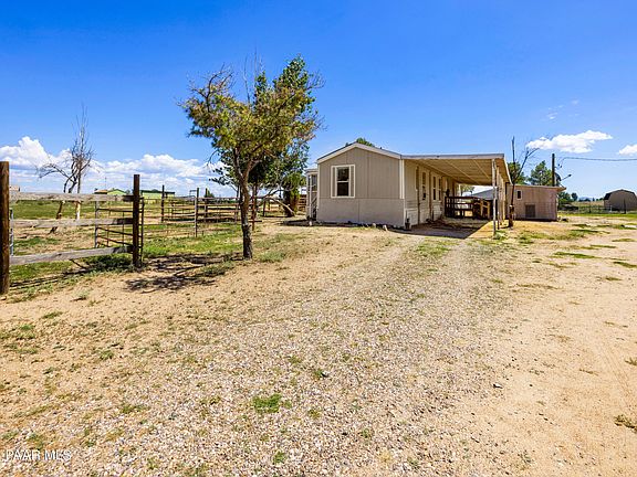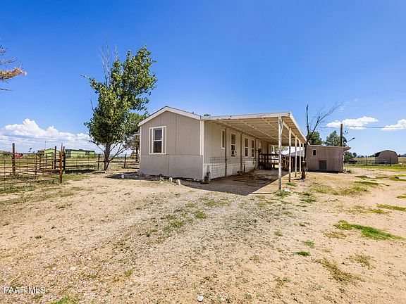 One acre property on level land in Chino Valley! Featuring a 2 bedroom/2 bathroom manufactured home with a private well. Great starter home with an Arizona Room on the back, covered carport, tack shed, Tuff Shed, and corrals for large domestics. Needs some TLC, but home has been professionally cleaned including shampooing the carpets. Home being sold ''As-Is''. Completely perimeter fenced.