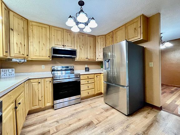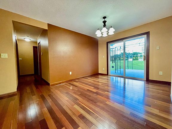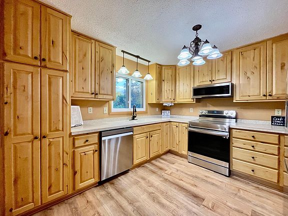 Come see this amazing 6 ac property in town w/4 bd, 3 ba & lg family room. You will enter into a lg foyer leading you up to the living area w/gorgeous Brazilian Cherry Wood flooring. The home has a brand new gas fireplace, new flooring & all new appliances. The dining room leads to a back deck & patio where you will love watching wildlife. Enjoy the 4-stall attached heated garage w/an enclosed shed behind. The 2 large tarp sheds stay for storing your boats, outside toys, utility trailers & a level space for a camper. There are mowed trails throughout the property for cross country skiing & walking. The home is set back from the road for privacy. The circle paved driveway makes it easy for parking. The property is wooded w/nice landscaping, white & purple lilac bushes, a mini rose bush & 7 apple trees! Sellers loved living here but it’s time to downsize & allow someone else to make use of all the wonderful attributes! Call for your private tour today.