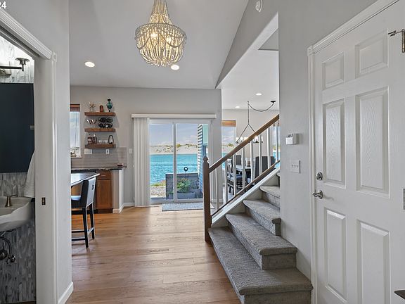 This beautifully remodeled 3-bedroom, 2.5-bath home offers sweeping majestic views of the scenic Siuslaw River. Step inside to discover the newly sophisticated interior design and modern upgrades. As you enter the home, you'll be greeted by the spacious living area featuring new 6" Provenza hardwood flooring. The open living and dining area is perfect for entertaining and offers breathtaking views of the river, creating a serene atmosphere. The kitchen is a chef's dream, boasting all new stainless steel appliances and stunning stone Krypton Quartzile countertops and island, adding both functionality and elegance to the space. On the main level, there is a convenient half bath featuring a floor-to-ceiling mosaic glass tile statement wall, adding a touch of artistic flair to the room. The laundry room is equipped with Quartzile countertops and even includes a wine fridge.Upstairs, the bedrooms feature new Berber carpeting, providing comfort and warmth underfoot. The bathrooms have been updated with new ceramic tile and quartz countertops, giving them a fresh and modern look.The primary suite is a true retreat, complete with a sitting area, vaulted ceilings, a spacious walk-in closet, and its own private bath. This is the perfect space to unwind and enjoy the views.Two additional bedrooms offer versatility for guests, a home office, or whatever your needs may be. Throughout the house, everything has been newly painted, creating a clean and inviting atmosphere. New lighting fixtures add a touch of elegance and enhance the overall ambiance of the home.Outside, you'll find a front porch, providing a cozy spot to relax and enjoy the neighborhood. The rear patio offers a private space to enjoy outdoor gatherings or simply soak in the surrounding beauty. With its picturesque views, stylish interior, and convenient location in Marine Manor, this newly remodeled home is a true gem of tranquility and beauty.