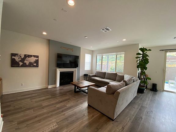 House for rent in The Preserve, one of North Carlsbad's most convenient and desirable family friendly community. This beautiful property boasts 3 bedrooms with 2.5 baths. A private backyard facing the mountains with no houses behind, a sizable yard with gazebo, firepit, own garden area, a balcony, and newly installed LVT flooring. The kitchen features quartz countertops, white cabinets with lots of storage space and upgraded appliances (fridge, microwave, stove, and oven). Smart Home includes smart locks, smart lighting, smart garage opener controlled from your own mobile device. The Master Bedroom offers a balcony that enhances the views, and the Master bath feature his and hers wash stations, oversized tub, and a massive walk-in closet. EV plug is available for your electric car. With an open floor plan, a big 2nd floor loft, and kitchen create a spacious atmosphere. Walkable distance to grocery store Albertson, Walmart, and shopping. About 6 miles to the beach with canyon and coastal breeze. Community amenities include pool, jacuzzi, gym, BBQ area, and two playgrounds are nearby. Excellent Carlsbad schools are within 5-mile radius. The backyard is perfect with fruit trees, multiple entertaining areas. Renters responsible for all utilities. 30-day move out notice is required. For small dogs, non-refundable $400 pet cleaning fee at move-out for carpet cleaning.