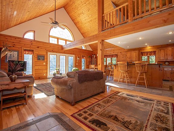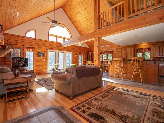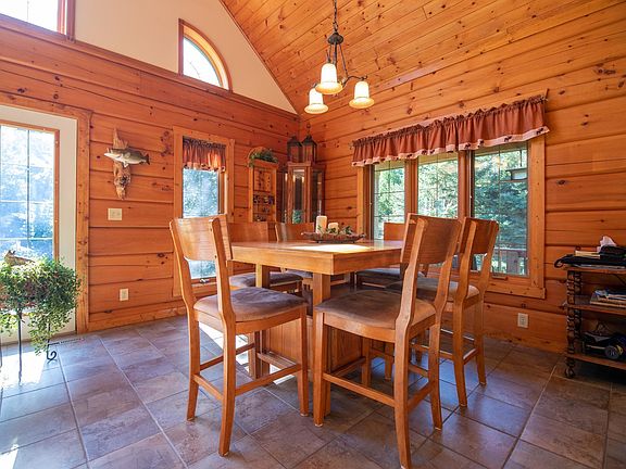 True log home here with lots of extras, Walk into your laundry/mudroom with ceramic floors that flow into the kitchen and dinning room, huge center Island with granite tops ,stainless steal appliances. large living room with soaring vaulted, tongue & groove knotty pine ceilings throughout the main level with a Douglas Fir Beam running from the loft. Log stairs up to the loft and master suite with a corner whirlpool tub and a walk in shower. Fully finished lower level with 3 bedrooms and a full bath with a large family room all with in floor heat, plus new carpet through out the house,knock down ceilings,corner beads,6 panel doors,central vac, plus covered porches on both sides of the home. 60x30 pole shed/garage with a heated 30x16 shop. all on a private wooded lot with nature right out your backyard.
