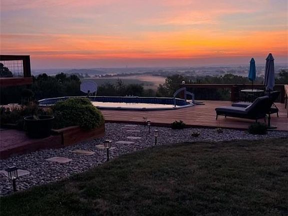 The VIEWS from this home are SPECTACULAR and will leave you speechless. Enjoy both the sunrises AND sunsets from this beautiful home that has the most amazing outdoor living space, including a large wrap around deck, huge lower deck built around a 15X30 above ground pool, and a cozy outdoor living space where you can enjoy watching movies or your favorite sports games outside while enjoying the weather. You can also ride your 4 wheeler to the back of the property and enjoy some trails.