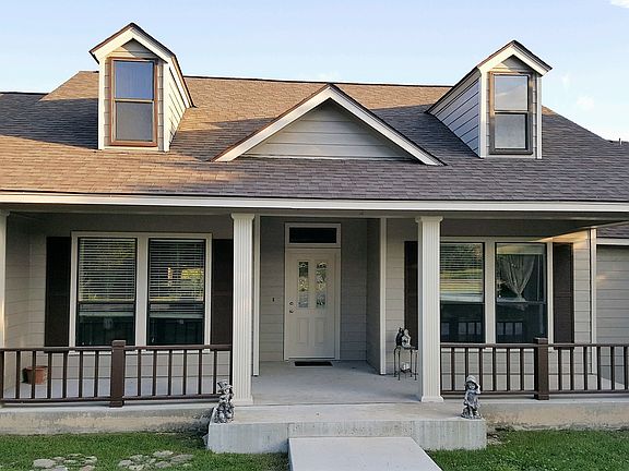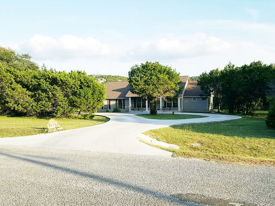 Ranch style home in the sought after Rim Rock Ranch neighborhood on 3 acres. In a highly desired school district, community, with great recreational and family activities. Concrete circular drive way spanning from street to garage in the side of the home with parking for all your toys. New Roof. Newly painted inside and out. New granite counters. Newly stained concrete floors. Nice sized rooms. Big kitchen with lots of cabinet space. Separate master, one level thru out, vaulted ceiling, very open living space. Huge covered deck for entertaining. Many cedar and oak in the backyard and plenty of room for more buildings, toys, and horses. Seasonal dry creek bed. No flood ins required. Access to Neighborhood Park, tennis court, basketball, volleyball, field, park and horse trails. Call Owners for showing 210-559-0352