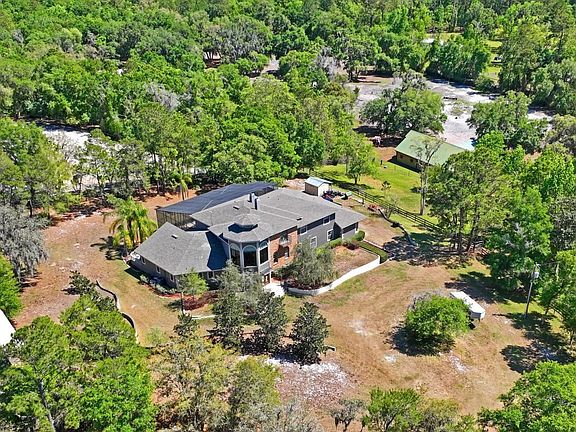Equestrians will appreciate this special location situated on almost 20 acres! This unique property is perfect for the most discerning buyer and has so many upgrades; BRAND NEW ROOF in 2021, large windows, flooring, paint, high quality lighting ,heating and cooling with 4 air conditioning units . The 7400 SF of living space with each room or living area a work of art, because there is no "cookie cutter" design with its SIX bedroom, 5 full bathrooms. A separate well-appointed master suite on the first floor with double door entry and your very own opening to the pool through French doors is situated for maximum privacy. Gorgeous vaulted ceilings and two beautiful wood burning fireplaces.....but lets not overlook the two other bedrooms on the main floor, once used as a mother-in-law ensuite with the laundry room downstairs. Take the spectacular spiral staircase upstairs to your secondary bedrooms and bathroom. Outside the pool area is accented with REAL BRICK, spa, outdoor kitchen and pool bath. All under a large screen enclosure for year-round enjoyment... But we are not finished, there is a four car garage/2 barns, tack room, feed room, bathroom with shower, an upstairs loft, a observation deck and your very own year-round pond. There's so much more I could list here, but to truly appreciate it you must see it! Call Liz to schedule your tour today!