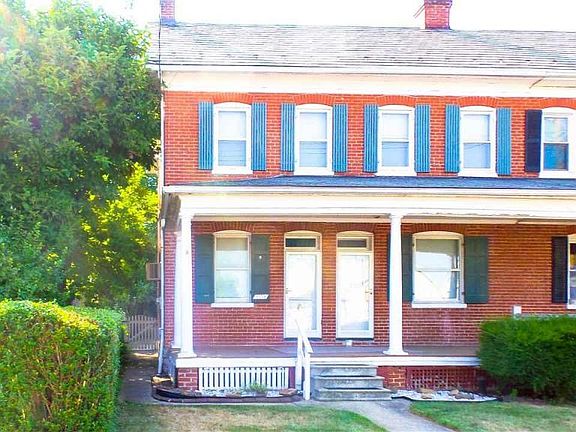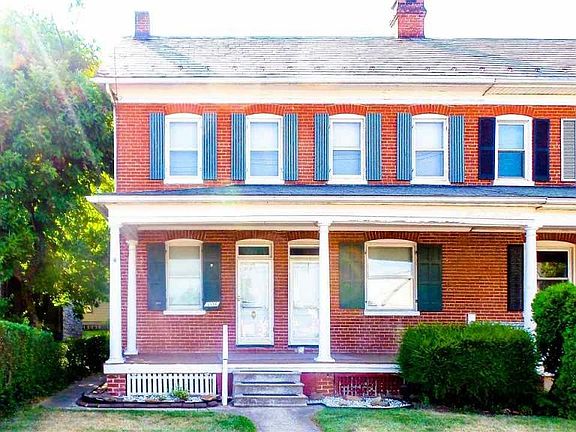 End Unit 2.5 story row home in Emigsville in Central Schools w/lrg front porch, slate roof, off street parking, wood clap detached shed, large workshop with gable overhang roof, fenced in yard, 75% finished attic w/additional storage room, full unfin bsmt w/bilco door, ceiling fans & lights, all appli included, backs to nature, just past Leg Up Farms, Mud rm too!