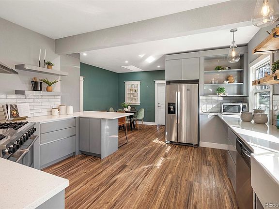 Welcome Home! Where historic charm and modern conveniences meet in this spectacular Sears Craftsman. As you enter, you are greeted by a lovely seating area with a cozy fireplace and the warmth of recently refinished hardwood floors throughout the main floor. The heart of the home is its stunning, fully remodeled kitchen (2021), a culinary delight with its expansive layout, abundant cabinetry, Quartz countertops, spacious eat in area that promises both functionality and style, making it the perfect backdrop for both everyday meals and grand gatherings. Also, on the main floor, are two bedrooms, use one as an office and the other makes a perfect bedroom with it's own bathroom! Upstairs is the large primary bedroom with en-suite bath and an additional large bedroom and hall bath. Invite your friends and family over and enjoy the low maintenance large back yard with space to bbq, play, and garden! This home affords so much above ground space for the price - a rare find in this neighborhood! The unfinished basement is ideal for all your storage needs. To ensure buyers' peace of mind, all NEW within the last five years: two beautifully remodeled bathrooms, kitchen remodel, windows (2019), roof, exterior paint, furnace, hot water heater (2025), and A/C! These upgrades enhance comfort while preserving the home's original charm, giving buyers the perfect blend of modern convenience and timeless character. Discover the perfect blend of comfort, historical style, functionality, and make this enchanting property your forever home. You will also love the walkability to many popular neighborhood establishments- The Gothic Theater, Moe's BBQ, Lady Justice Brewery, & The Whiskey Biscuit!