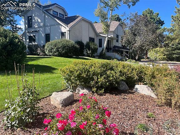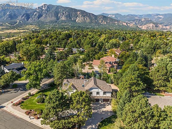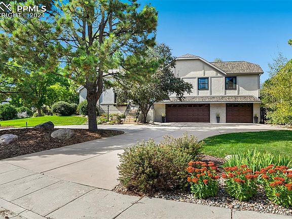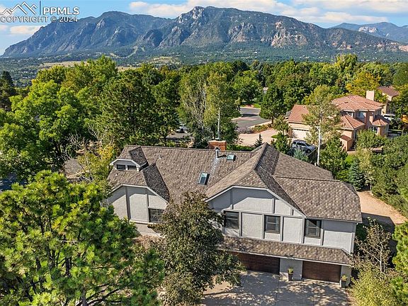 Situated on a quiet cul-de-sac, this updated home in Broadmoor Ridge area, offers a nearly half acre flat lot, plus a fenced backyard! Easy walking distance to Broadmoor Elementary and the Red Walking Path (shortcut to the Country Club of CO). Great for entertaining, the newer composite deck opens to the fire pit and views of Cheyenne Mountain. Plenty of room for a playset and lawn games. Broad sideyard is perfect for gardening. This home has been tastefully renovated with fresh exterior & interior paint throughout and newer white oak floors on main level and stairs. This bright, sizable home flows to the vaulted living room with built-in shelving next to the formal dining room, with stunning, lighted hutch, perfect for storing China & serving pieces. The kitchen has been refreshed with white and grey cabinets, composite quartz counters, new backsplash & 3 big pantry closets for ample storage. A cozy eating nook surrounded by windows opens to the composite deck. The vaulted main level family room has a brick wood-burning fireplace, built-in bookshelves, wet bar and updated half bath. Upper level includes 4 bedrooms and 3 newly remodeled, modern baths. The spacious master retreat has a large walk-in closet, mountain views and a gorgeous new bath, with marble double vanity, appliance cabinet and a delightful spa shower. The 2nd upper bedroom features a walk-in closet and a window seat with storage. The 4th secluded bedroom, just a few steps up, was renovated to include an attached, private bath. The lower level features an ample rec room, currently used as a workout room, with a sauna! There is a 5th bedroom with it's own 3/4 bath in the laundry area. Sellers added a wonderful home theater room off the rec room. It is sound proof including door, window and ducts. Fully finished oversized 3-car garage with deep bays has great storage, EV Plug & new garage doors. Minutes to I-25, Downtown, Broadmoor Hotel, shopping, restaurants and Fort Carson. A trophy home!!