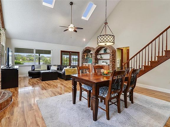 You will get a warm feeling as you drive through the tree lined streets leading up to this meticulous home. It is set on a corner that gets minimal traffic making it perfect to spend time playing for hours. As you get your first glance you can't help but notice how clean and well maintained the lawn and home are kept. Framed with a gorgeous mature Oak and an inviting front door you just know that the inside is just as immaculate as the outside! Step through the open entry way and immediately notice that there are clear views of Lake Porter from every corner! The downstairs living areas have upgraded laminate flooring, a cozy fireplace, vaulted ceilings and sky lights that give way to lots of natural light and an open feeling. There is no loss for storage through out the home from the front entry to the classic architectural brick built ins that allows you to have a place for all of your things. Make your way through the French doors to the expansive newly screened lanai (2018). After a long day enjoy feeding the ducks and watching the bald eagles that are regularly seen perching in the trees immediately in front of the home while watching breathtaking sunsets. The kitchen hosts stainless steel appliances and a reverse osmosis water filtration system. A majority of the homes interior has been freshly painted and the upstairs carpets were replaced May 2018. The HOA gives little to no hassle and they even host a house decorating contest for the holidays! This home is better in person than in the pictures! Make an appointment to take a look today!