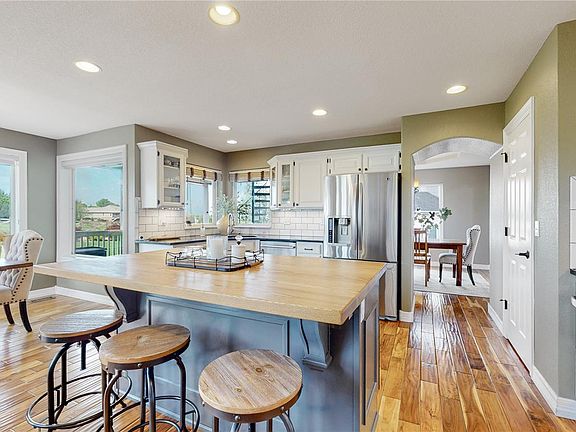 Situated on the third hole of Legacy Ridge Golf Course with unobstructed mountain views, this home is IT! Featuring vaulted ceilings at both the entry and family room, engineered hardwood floors, formal living and dining room, main level private office, fully finished basement with kitchenette, and a 3 car garage. Retreat to the upper level primary bedroom with views out of every window, and a large private balcony that overlooks the golf course and the Rocky Mountain backdrop! Three more bedrooms can be found on the upper level with the fifth bedroom in the basement. Great home for entertaining with the kitchen open to the family room and providing access to the sprawling deck with picturesque backyard. The community pool is just down the street! Enjoy the year round sunsets at this MUST SEE property and make it yours today! Please call for a private showing.