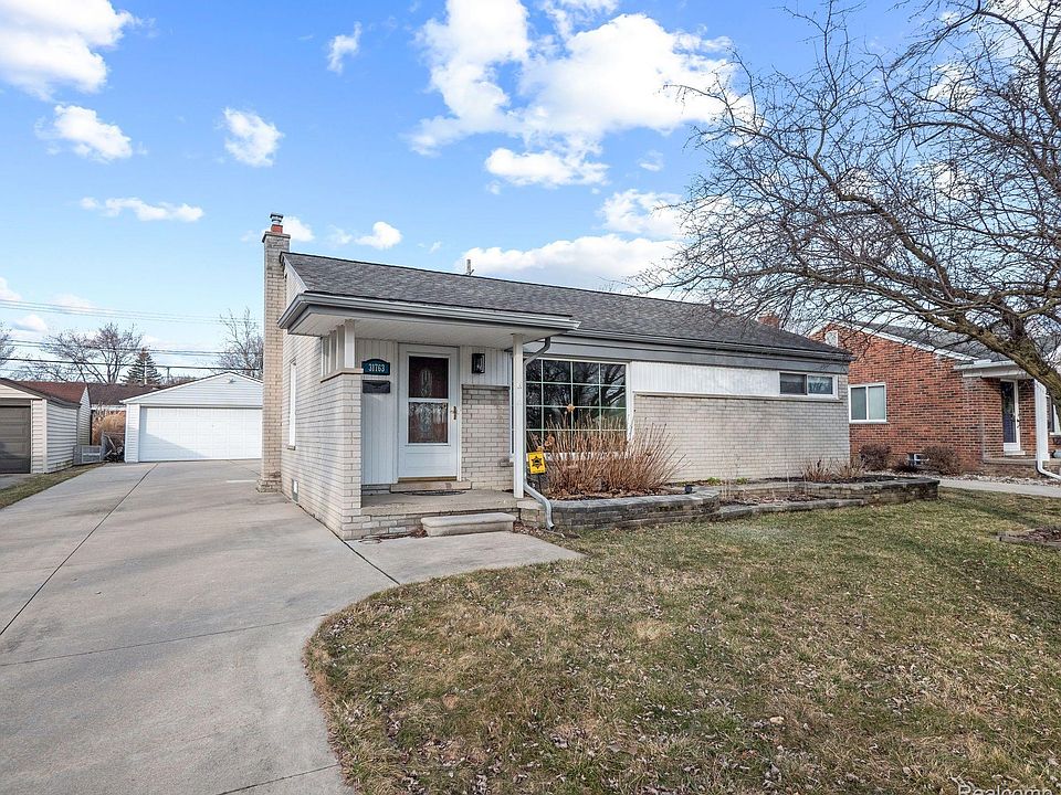 HIGHEST AND BEST DUE MONDAY 3/24 AT 5PM - Welcome to this charming, 2 bedroom (3rd bedroom was previously used as an office but could be converted back), 1 1/2 bath, brick ranch with a front flower bed and covered porch. 2 car detached garage which is rare for the neighborhood. Situated on a quiet family friendly street, located in the highly sought after Bel-Aire Hills sub, walking distance to schools and Downtown Farmington. The living room has a large picture window allowing ample natural light. The updated kitchen boasts stainless steel appliances as well as lot of cabinet and counter space. 2 generous bedrooms share the updated full bath with a beautiful new vanity and tub/shower combo. Three seasons room leads to the fenced backyard providing a great place to relax or entertain. Partially finished basement with 1/2 bath, laundry room, LVP flooring and an abundance of storage awaits your finishing touches and could create additional living space. New furnace and air-conditioning in 2024. Basement waterproofing completed 2025 with a lifetime transferrable warranty. Close to multiple freeways for an easy commute. Wonderful local shopping, dining and entertainment. Don’t miss out on this incredible opportunity. Schedule your private showing today.