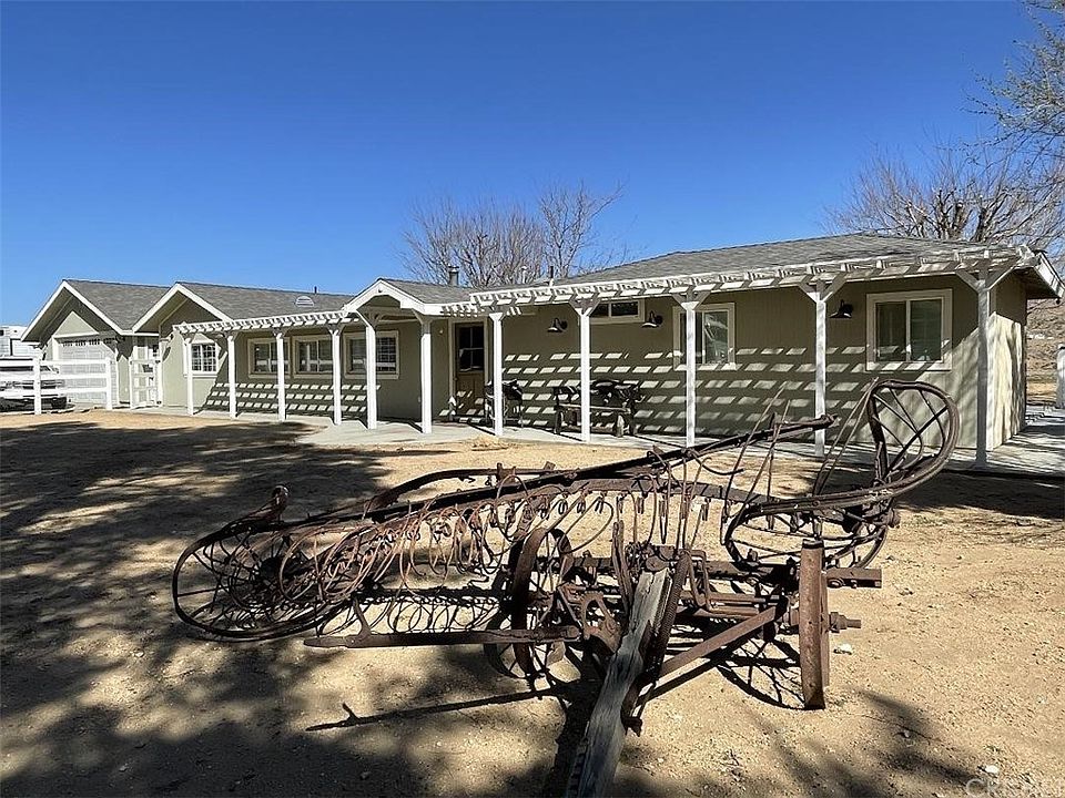 This home is one of the original ranch properties for Indian Oak beautifully restored renovated with every appointment. Tile, granite stone flooring throughout, beautiful carpeting, two-bedrooms have a private patio. This is a must-see property. The fully remodeled kitchen with a farmhouse sink, beautiful wet room with pet shower and bathroom adjacent. This is an extremely well-appointed home with all of the upgrades that are sought for in a home today. New Windows and doors throughout, gorgeous pool and spa, your own private Orchard, oversized garage for all your toys and enough land on the lower part for a full course arena. There is so much you can do with this property it is extremely private with two electric gates. The westerly view is gorgeous in the evening with beautiful sunsets, cool breezes and has a high producing well, natural gas, fully fenced- plenty of room for all your toys. If you wanted to put your own guesthouse.
