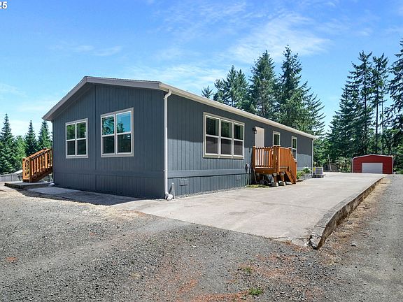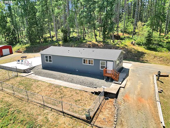 Just completed in 2024, this brand-new Clayton Homes double-wide offers modern living on 7.35 acres of private, usable land. The 3 bedroom, 2 bathroom home is 1,512 sq ft and packed with upgrades, including stone countertops, a large kitchen island, recessed can lighting, ceiling fans, heat pump, and a fully warranted kitchen appliance package. The open layout provides comfortable living and dining spaces, and the spacious primary suite includes an attached bath and a large walk-in closet. The acreage is well-maintained and mostly fenced (all but a small section), offering a peaceful setting with no neighboring homes in view, mature fir trees, and beautiful surrounding foothill views. A 20' x 26' metal garage/outbuilding built by West Coast Metal adds valuable storage or workspace. The property also features a brand-new pump house with a water softener and pressure tank, plus a generator plug installed at the electrical pole for added peace of mind. Private well and septic were installed in 2017 (septic pumped in the last 3 years), and the home is accessed via a long private gravel driveway that enhances the sense of seclusion. A large concrete pad next to the house—once the site of an old attached garage—offers the perfect spot to build a new garage or use as an outdoor seating/entertaining area. Zoned Rural Residential with low county taxes, this is a rare opportunity to enjoy the benefits of new construction combined with space, privacy, and versatility.