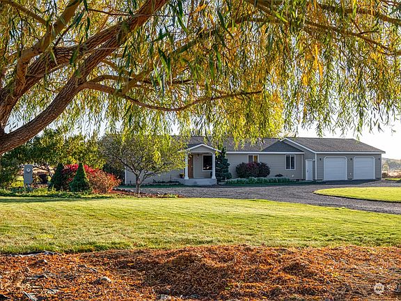 Beautiful, well cared property, conveniently located 3 miles from down town Ephrata.This 4 bed, 2 bath home on 2.5 acres features a 10 feet high vaulted ceiling, jetted tub, glass shower, and walk in closet in primary bedroom, contemporary kitchen with cherry fireside cabinets, open space concept in living and dining room, utility room, water softener system, 900 sq ft heated two car garage, concrete patio with gazebo, underground sprinkler system, mature trees and landscape, irrigated garden area, fruit trees (peaches, cherries, pears, nectarines) and grape vine, completely finished, insulated and heated pump house. plenty of space to built a swimming pool, barn or chicken coop. is a must see!