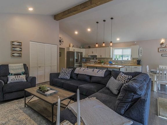 - Beamed Ceilings, Cathedral Ceiling(s), Kitchen Island, Open Floorplan, Recessed Lighting