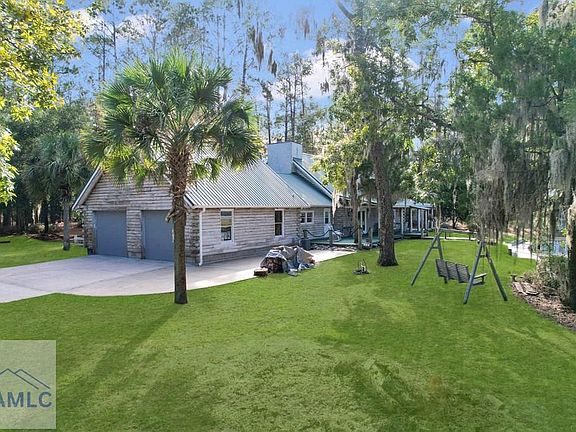 Discover your dream coastal escape in this charming 2,336 sq ft waterfront cabin, nestled on 1.23 acres with unparalleled views of the serene Georgia coast. This 3-bedroom, 3-bathroom retreat offers comfort and character, with water views from nearly every room, immersing you in the natural beauty of the landscape. Step into the heart of the home, where a grand stone wood-burning fireplace warms the open kitchen and living room—perfect for cozy evenings or entertaining. The expansive kitchen, living room, and master suite all open to a spacious covered deck, inviting you to unwind with your favorite drink in hand, savoring peaceful sunsets from a rocking chair. Outside, your private dock awaits, offering direct access to prime red fishing waters and plenty of space to dock your boat. Beyond your own sanctuary, enjoy community amenities including a boat ramp, community center, and additional docks for exploring nearby waters. Located just a short drive from charming local spots like Shellman Bluff, historic Darien, and the natural beauty of Harris Neck Wildlife Refuge, this coastal haven provides the perfect balance of seclusion and convenience—only an hour from Savannah or Brunswick. Don't miss this rare opportunity to own a slice of coastal paradise! Copy and paste this for a virtual tour https://my.matterport.com/show/?m=2GkHVK9m59k