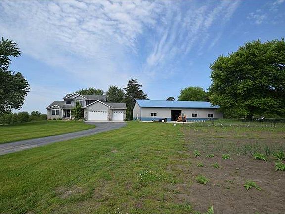 An acreage for all to enjoy! 2 story with 3 car garage home built in 2002. Home features a large country kitchen with tiled floor, formal dining room, main floor laundry off the kitchen, cathedral ceilings in great room with fireplace,sun/office room,open staircase to second level with 3 large bedrooms and one full bath. Main floor master bedroom with vaulted ceiling. Master bath with double sinks, jet tub, shower and walk-in closet. House includes a 12' x 42' patio, Walkout basement. Unfinished basement with enough room availability for 5th bedroom and rec room. Heated 50 x 80 shop completed in 2014. Shop floors are cemented with floor drains. Two 10' doors with openers.This includes finished 50' x 20' farm office, designed with a 20 x 16 kitchen and dining area and restroom,12' x 12'bedroom. Property also includes generator. Back property line to be extend to allow septic leach field to be within the acreage boundaries.